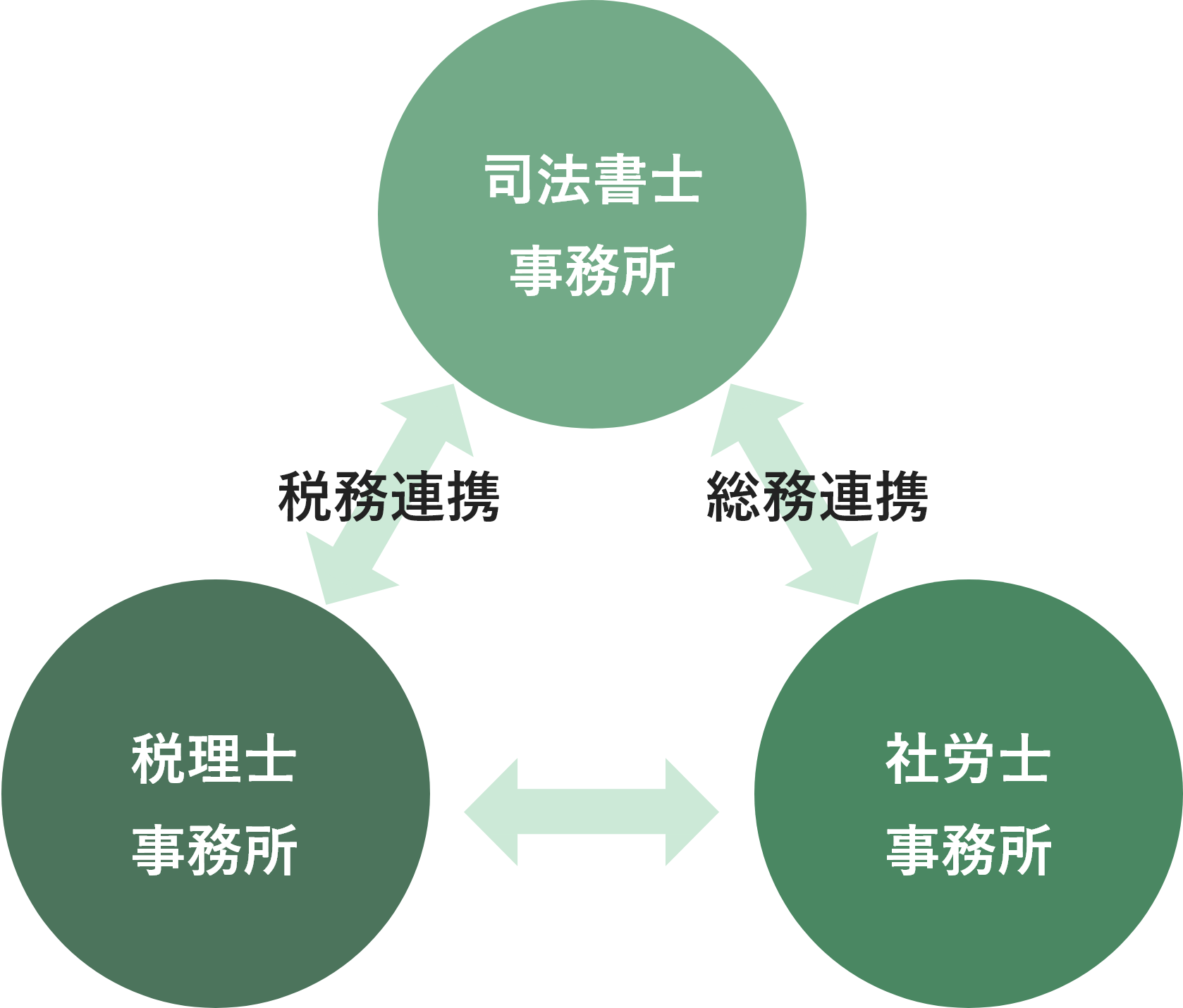当事務所では、事業承継に関連する「法務、税務、会計、労務」などの多岐にわたる課題に対応するため、各専門家とチームとなって、連携したサービスを提供しておりますので、お気軽にご相談ください。